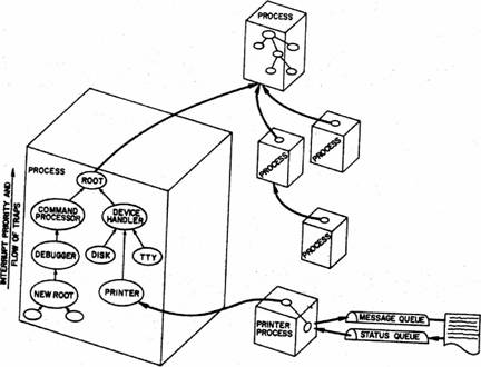 Wirth12 gives another example in which it is logically much simpler to have a floating process driving the operator’s console than to have a domain (routine) private to each process which performs this function. The listener described above is a third example of this.
