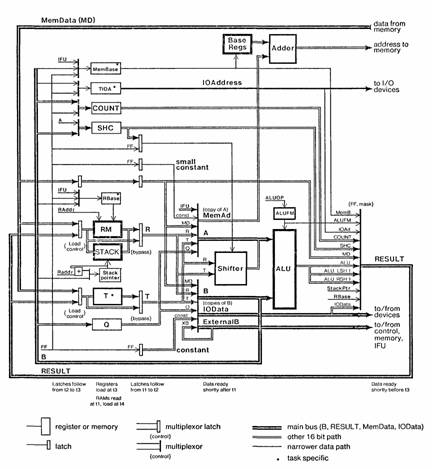 IOAddress: a task specific register which drives the IOAddress bus, and is loaded by I/O microcode to specify a device address for subsequent INPUT and OUTPUT operations. It may be loaded from B or FF.