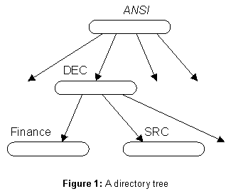 ANSI/DEC, for example ANSI/DEC/SRC or ANSI/DEC/Finance, can be assigned without any concern for what names exist with the prefix ANSI/IBM, such as ANSI/IBM/TJW or ANSI/IBM/Finance. Each directory can have its own administrator, and they do not have to coordinate their actions. Since new directory names can be created as easily as new entity names, the organization of the name space can readily be made broader (by adding ANSI/DEC/Personnel or ANSI/DEC/Legal) or deeper (with ANSI/DEC/SRC/Finance or ANSI/DEC/SRC/Theory).