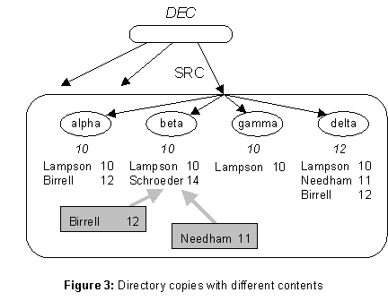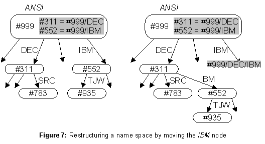 IBM directory should be moved under the DEC directory, as shown in figure 7. Moving a subtree is the only restructuring operation; as long as it doesn’t form a cycle (not allowed), it preserves the tree structure of the service.The obvious problem with this move is that all the names that begin