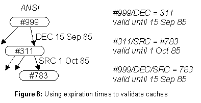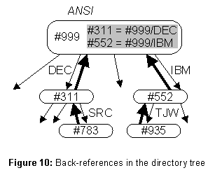 ANSI/IBM no longer work, since IBM is no longer a child of ANSI. The solution is familiar from the telephone system: when a number changes, a call to the old number elicits the response, "The number you have reached has been changed. The new number is...." Similarly, an entry in ANSI for IBM, with the link ANSI/DEC/IBM as its value, gives names beginning ANSI/IBM the same meaning they had before the takeover.Caching