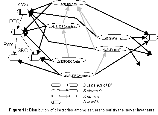The fat arrows in figure 11 show a placement of directories on servers satisfying (S1-2). Note that each directory with inSN true has a fat arrow entering from above.