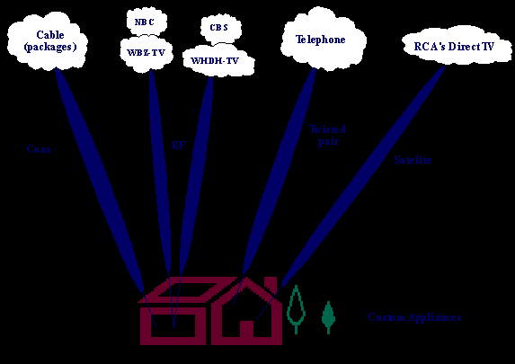 The concept of an information infrastructure is not new. Although we currently have a rich information infrastructure, it more closely resembles the dedicated utility infrastructures (electricity, gas, and water) than the generic packaged goods system. For example, telephone and cable services are each carried over their own wired networks. Although radio and television share the airwaves, for practical purposes they are discrete distribution channels, since separate portions of the spectrum have been allocated to each type of service.
