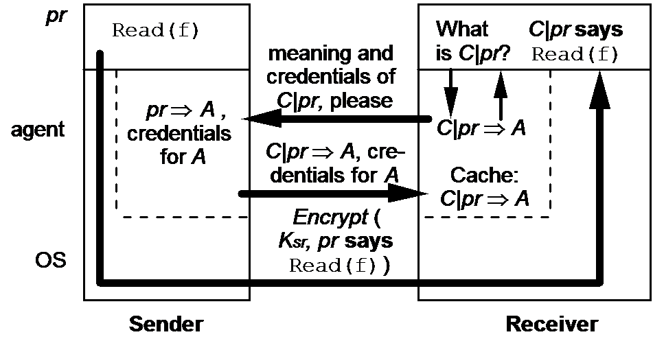 A sends B credentials of channel C: proof that C Þ A.